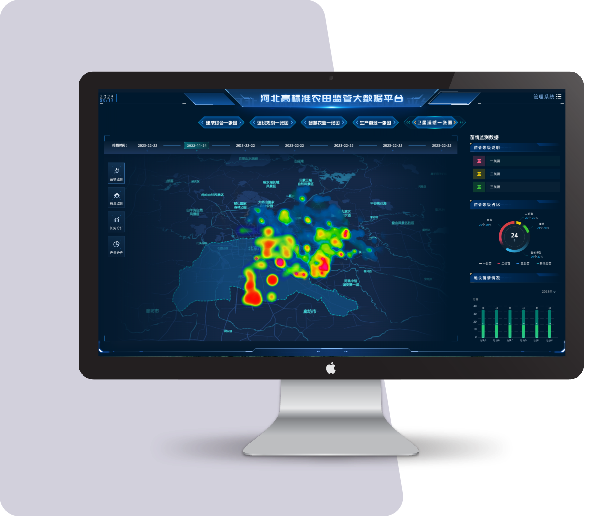 系统实现了对农业生产全过程的数字化、信息化、智能化监管,通过采集、整合和分析来自不同数据源的数据,包括土壤、气象、水文、作物等多种数据类型,以及农业生产中的各个环节数据,如耕种、施肥、灌溉、病虫害防治等,从而进行精准决策和科学调度。